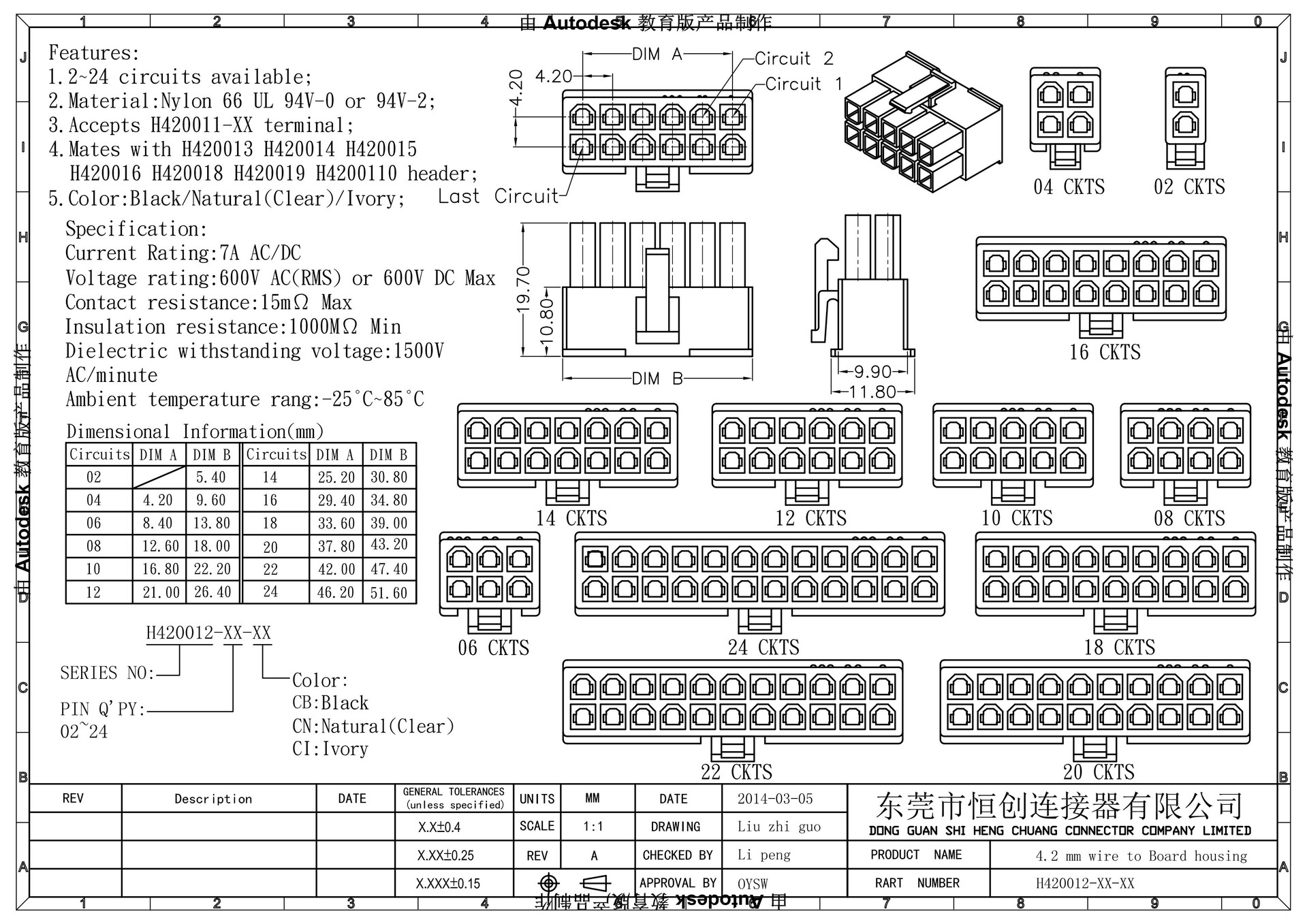 4.20mm间距连接器5557双排插头胶壳 端子